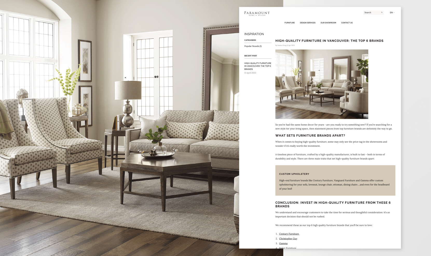 There’s an adage that asserts challenges breed innovation. This sentiment is echoed in every corner of Tugboat Group's workspace, but never has it been more evident than in our recent project for Paramount Home and Design. As Vancouver’s crown jewel in design concept furniture retailing, Paramount's new Richmond showroom stands as a beacon of luxury and sophistication. Our task was monumental: infuse their online presence with the same elegance, all while navigating the nuances and constraints of the Shopify CMS platform.